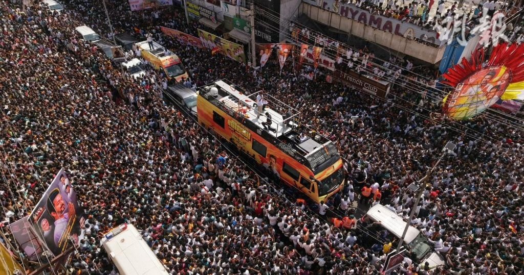 該政治集會由當地一名知名演員Vijay發起,為其成立的政黨參加明年初舉行的地方選舉進行競選造勢。《印度斯坦時報》引述目擊者稱,晚上約7時45分人群擠向競選車欲一睹Vijay。據悉,Vijay站在競選車頂發表演講時,數千名民眾湧向他,有人被路障絆倒,引發人踩人。意外發生後,救護車趕往現場。不過由於停電,原本擁擠的會場陷入漆黑,一片混亂,增加救援工作的難度。(路透社/印度斯坦時報/新華社/中新社)
