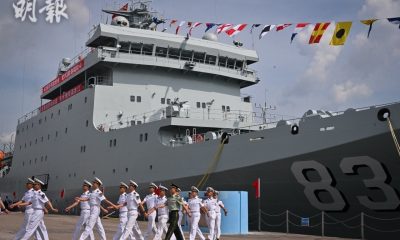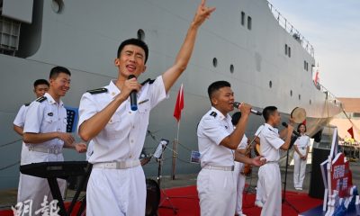 解放軍海軍戚繼光艦及沂蒙山艦今早抵達香港水域。新華社報道,兩艦由駐港解放軍的宿遷艦和特區政府船隻引航,駛向昂船洲軍營。