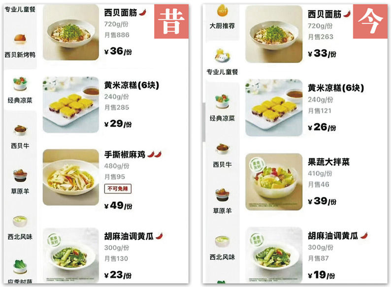 據《南方都市報》,西貝用於承諾「25分鐘上齊菜品」的標誌性沙漏已經不再出現在顧客面前。西貝餐廳服務員強調,門店經過調整後大部分菜品都是「現炒現做」,食材也都是當日現買,上午、中午各進貨一次。