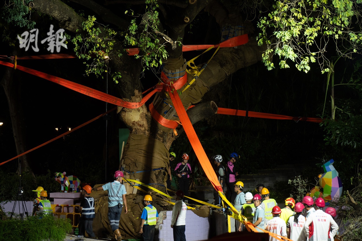 康文署指,署方在審視古樹的健康及結構狀況,並綜合其受損程度、施工方法及現場環境等因素後,在中國建築社區應急義工隊的協助及專業技術支援下,制定合適的保育方案,包括使用移動式起動機將樹木扶正;以鋼架加設穩固系統為樹木提供額外的支撐;此外,亦會擴闊花槽並增加泥土以改善樹木生長環境。康文署稱,有關工作已進入最後階段,目前正進行擴闊花槽的工程,預計將於本周末完成。