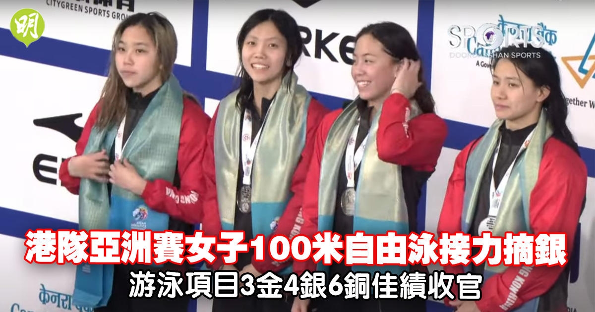 游泳|港隊亞洲賽女子100米自由泳接力摘銀 游泳項目3金4銀6銅佳績收官 (17:32)