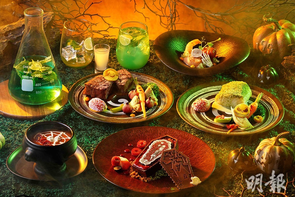 每年最令記者期待的香港迪士尼樂園活動,必定是聚滿了各式各樣「開心鬼」的萬聖節活動,除了迪士尼朋友以搞鬼一面跟大家玩成一片,園區各餐廳亦推出多款特色萬聖節美食,包括河景餐廳推出阿Jack怪誕大餐($498起)、雲龍軒的血色豆腐腦($68)、晶荷軒的迪士尼搗蛋嘩娃茶粿子($98)等。