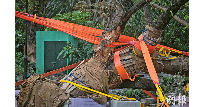 康文署回覆本報表示,在審視古樹的健康及結構狀况並扶正後,以鋼架加設穩固,現正進行最後階段擴闊花槽的工程,由於樹木大部分根部已嚴重受損,其復原進度仍有待觀察。署方會密切留意樹木的生長情况及復原進度,採取合適的護養方案,盡力保留古樹。