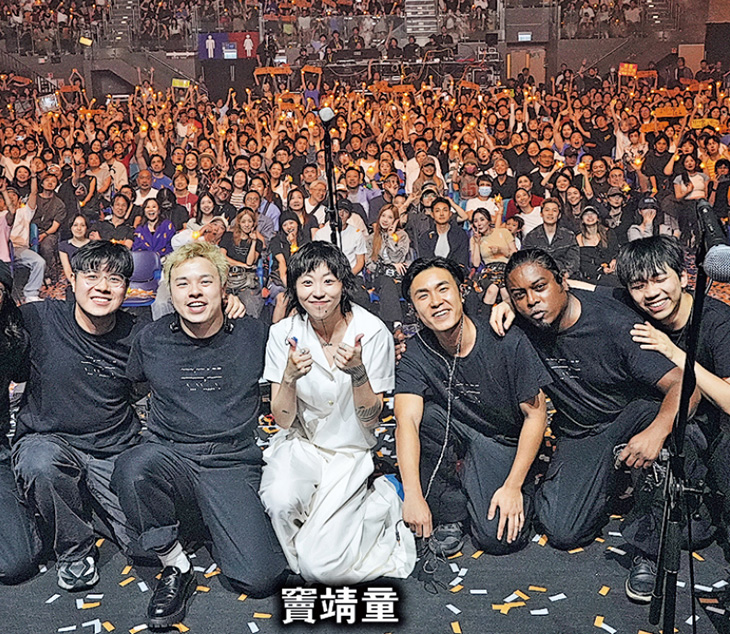 【明報專訊】王菲女兒竇靖童(Leah Dou)《狀況外世界巡迴演唱會》前晚假麥花臣場館舉行終極一場,全場爆滿,除嫲嫲,還有陳奕迅與太太徐濠縈伙女兒陳康堤和日本混血模特兒男友Shou Honda,容祖兒、黃耀明、陳蕾、雲浩影與男友T-Ma(馬敬恆)、江旻憓,以及上山詩鈉與女兒Hilary捧場。