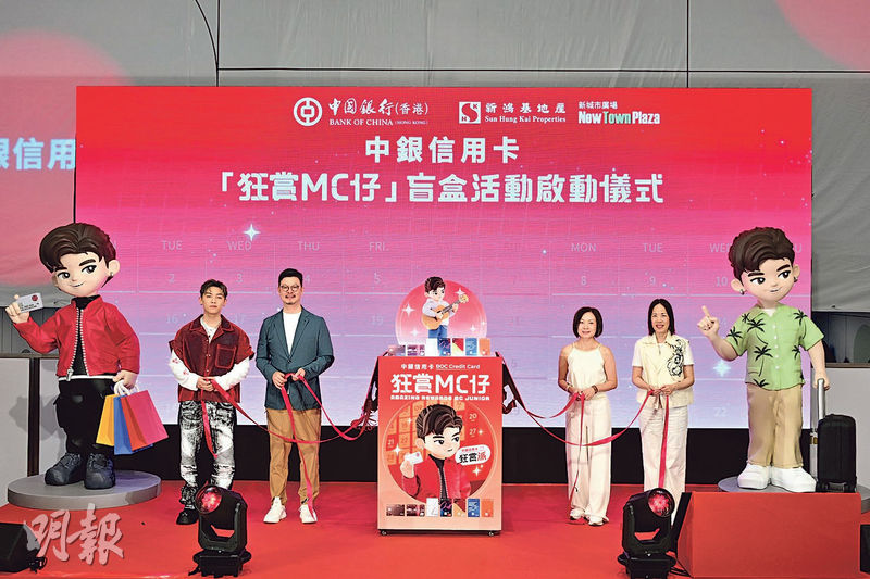【明報專訊】「IP經濟」繼續火熱,盲盒熱潮席捲本地消費圈。今年在港盲盒相關簽帳金額按年倍增,中銀(2388)信用卡食住個勢,聯手人氣歌手張天賦推出「狂賞MC仔」盲盒活動,3款造型手辦公仔吸睛度十足,仲聯乘新地(0016)旗下商場推動本地零售消費。
