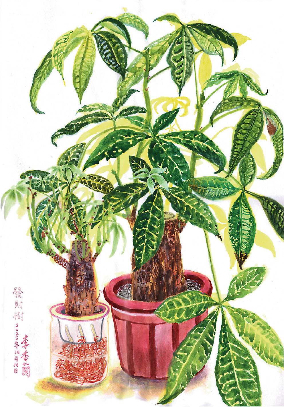 副刊 寫生看世界:#07:發財樹的重生 發佈於 22 小時 前 2025 年 10 月 19 日 By 明報 【明報專訊】今個星期我想足不出戶,所以選擇在家中繪畫營養不良的發財樹。望着這兩棵曾經被我疏忽照顧的植物,心情複雜,就像替兩個病人寫生。當我畫到枯萎的部分,內心也感到愧疚。曾經為了杜絕蟻竇,我把大量的醋倒入泥土中,雖然殺死了蟻卻也讓發財樹的一半葉子枯萎了。 相關文章:星期日生活 不要錯過 中環美食:期間限定「大牌檔」 饅頭索炒蜆豉椒汁冶味 繼續閱讀 贊助商 猜你喜歡 無名周記:「要做的我都做了」——悼庶民首相村山富市 廚房戀愛論:砍掉重練——專訪遊牧主廚Gabriel Chung 圖文城市:靈感之窗 Short D:(七十二):如何寫信給父親? 開門讀書:當人類不再畏懼 #012 日日
