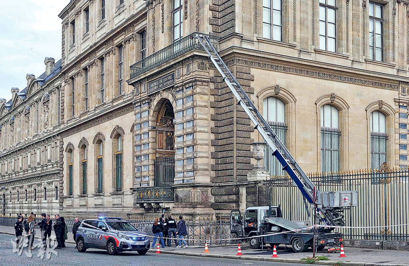【明報專訊】法國巴黎羅浮宮周日(19日)早上開館期間遇劫。最少3名男子利用升降梯和電鋸等工具,破窗進入一處展館後盜去9件法國王室珠寶,然後乘坐電單車逃離現場。當局昨天在劫案現場附近尋回一頂有破損的后冠;羅浮宮宣布出於「特殊原因」當天全日暫停開放。