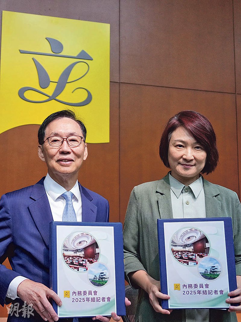 【明報專訊】立法會內務委員會昨舉行年結記者會。內會副主席陳健波主動反駁有關議員浪費公帑的質疑,稱議員即使開會時不在席也在辦公室工作,在議會外也有大量工作,認為說法「不公道」。立法會主席梁君彥不爭連任,有傳內會主席李慧琼是熱門接任人選之一,她回應說有意參選的議員要先做好選舉工程,能當選才有下一步計劃,現時選舉未開始,談大主席接任人言之過早。