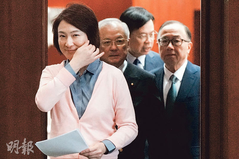 立法會內務委員會上周五同意由內會主席李慧琼動議告別議案。李昨在廖長江、自由黨張宇人及財會主席陳振英陪同下見記者,她引述部分議員關注辯論臨近提名期,或辯論可能對選舉不公,也有議員表達希望有更多時間處理選舉,經與建制「核心組」成員及不同議員商量後,決定撤回動議。