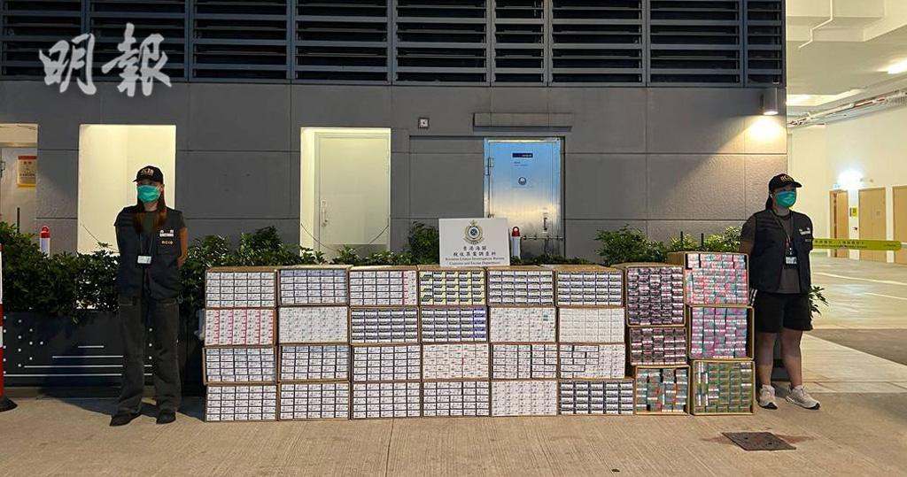 海關今午(20日)於荃灣進行反私煙巡邏期間,於一棟商業大廈截查一名可疑男子,於其手推車上檢獲2.1萬支私煙及1.1萬支加熱煙。其後將該男子押至商廈一單位,再搜出93萬支私煙及61萬支加熱煙,行動中檢獲私煙及加熱煙總市值約610萬元。涉案被捕的40歲男子,報稱倉務員,初步相信他負責管理私煙及加熱煙儲存倉庫,案件仍在調查中。