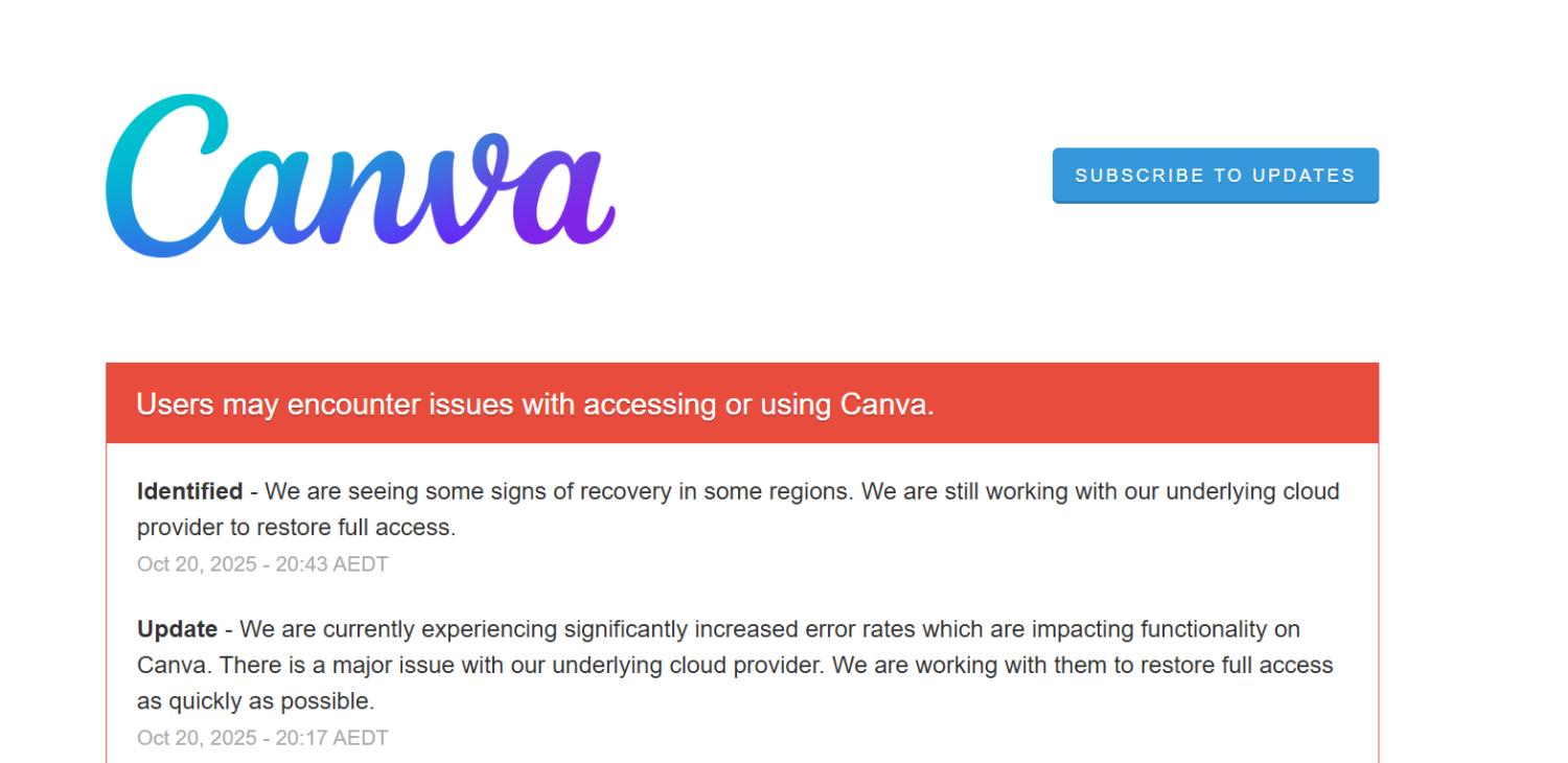 即時熱點 Canva、Zoom等突然癱瘓 亞馬遜網路服務中斷所致 (17:45) 發佈於 3 天 前 2025 年 10 月 20 日 By 明報 BBC報道,由於亞馬遜網路服務(AWS,Amazon Web Services)中斷,導致全球多個大型網站及應用程式癱瘓,亞馬遜表示正在努力解決並已確定潛在原因。受影響的包括Canva、Zoom、Signal、Snapchat及Duolingo等,以及英國不少大型銀行包括Lloyds及蘇格蘭銀行(Bank of Scotland)等。 相關文章:中斷亞馬遜網路服務編輯推介 Up Next 高市早苗|山本拓成日本首位「第一先生」 曾與高市早苗離婚後再婚冠妻姓 (19:28) 不要錯過 風神|天文台:周一下午5時至7時直接發出三號強風信號 (23:16) 繼續閱讀 贊助商 猜你喜歡 亞馬遜AWS斷線 癱瘓大量網站 波及社交通訊軟件 航企服務受阻