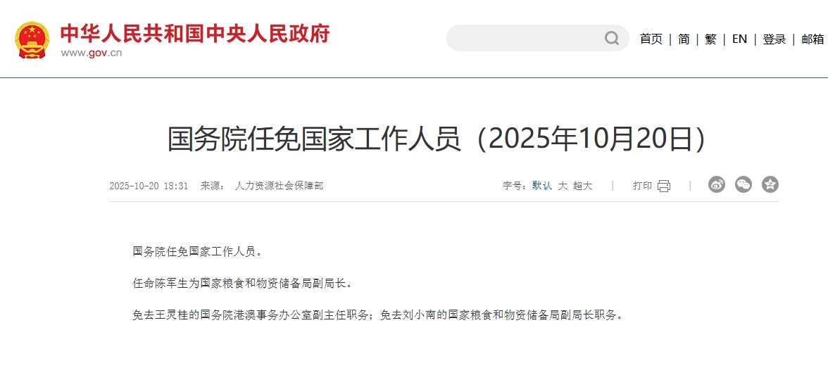 即時兩岸 國務院免去王靈桂的港澳辦副主任職務 (19:34) 發佈於 3 天 前 2025 年 10 月 20 日 By 明報 中國人力資源社會保障部10月20日通報國務院任免國家工作人員。 任命陳軍生為國家糧食和物資儲備局副局長。 免去王靈桂的國務院港澳事務辦公室副主任職務;免去劉小南的國家糧食和物資儲備局副局長職務。 現年59歲的王靈桂此前已升任中國僑聯黨組書記、主席(綜合報道) 相關文章:僑聯主席港澳辦副主任王靈桂免職 Up Next 王文濤與荷蘭經濟大臣通話 促妥善解決安世半導體問題 (23:23) 不要錯過 全國秋糧收穫近七成 (22:45) 繼續閱讀 贊助商 猜你喜歡 港澳辦副主任王靈桂升任中國僑聯黨組書記 (00:45) 徐啟方接任國務院港澳辦常務副主任 (20:46)