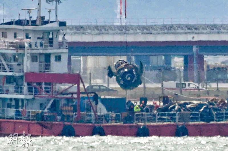 【明報專訊】阿聯酋航空貨機周一凌晨在香港國際機場降落期間撞到巡邏車並雙雙墜海,車上兩名保安人員離世。兩艘打撈船「南天翔」、「南天鵬」及拖船「穗救拖18」前日抵達機場附近水域。機管局稱,打撈團隊已於昨晚吊起失事貨機機尾,並放在躉船,移交民航意外調查機構處理,進行包括取回俗稱黑盒的飛行紀錄儀的工作。另警方已向涉事飛機的機組人員抽取血液及尿液樣本進行酒精化驗及驗毒,確認全部均呈陰性。