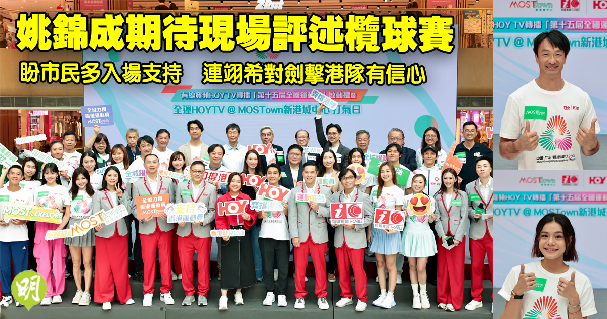距離粵港澳全運會開幕僅15天,有線寬頻通訊有限公司今午(25日)在新港城中心舉行HOY TV轉播全運會啟動禮,正式公布賽事轉播及評述團陣容。前欖球港將姚錦成作為專業評述員之一,暢談對現場直播評述的期待,並呼籲市民入場支持,「每當隊友跑出球員通道時,聽到歡呼聲,就會有無限推動力」。