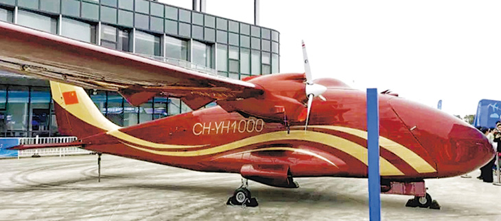 【明報專訊】2025南昌飛行大會暨航空產業博覽會近日在江西南昌高新區瑤湖機場開幕,中國航天科技集團旗下中國航天空氣動力技術研究院攜彩虹無人機家族明星產品亮相,今年5月首飛的YH1000成為展會焦點之一。YH1000今次換上紅色結合黃色絲帶紋樣裝飾的新塗裝亮相,顯示該機型進一步邁向商業化。這款中空運輸機可搭載超過一噸的貨物連續飛行10小時,可在土路甚至草地短距起降,實現偏遠地區低成本快捷貨運。