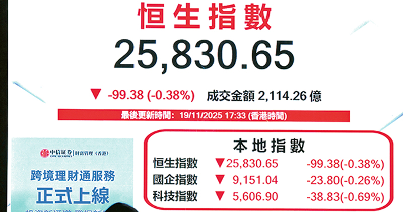 拆息全線向下 分析:投資者借貸需求疲軟 (2025-11-20)