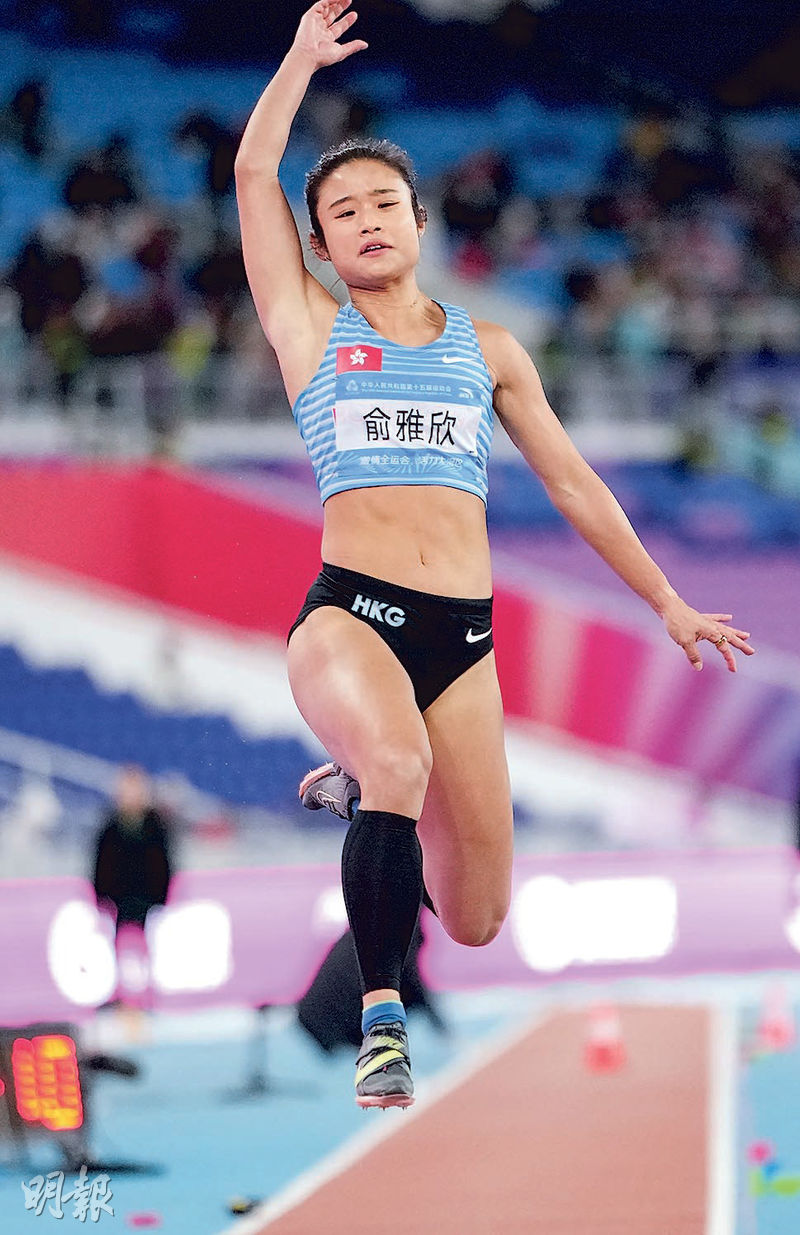 另邊廂,杭州亞運銅牌得主俞雅欣在女子跳遠資格賽跳出6.26米,並列總成績第3名殺入決賽,27歲的她首兩次未能成功試跳,第3次助跑加速時受傷跌倒未能完賽,憾別今屆賽事。不幸中的大幸是,賽後她證實僅為拉傷右腿肌肉,「非常感謝大家支持及關懷,今次全運令大家失望,雖然詳細情况仍有侍香港醫生評估,不過確定無傷到阿基里斯腱或者其他大肌腱。我會好好休息,然後努力復元準備好迎接下年賽事」。