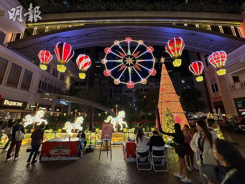 利東街今年以逾2萬粒LED燈珠在中庭打造8米高幻彩聖誕樹、直徑7.5米空中摩天輪及熱氣球,整個燈光裝置呈現歐洲嘉年華氣氛,即日至2026年1月1日每日下午5時開始亮燈。此外,利東街在中庭安排聖誕燈光音樂匯演「Luminous Symphony」(見本文短片),每日下午5時30分起,每隔20分鐘上演。(拍攝及剪接︰卓朗為)