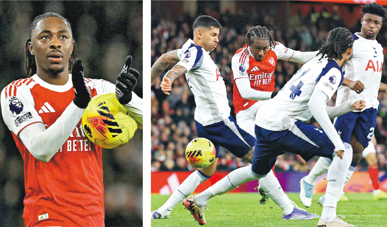【明報專訊】阿仙奴昨晨於英超憑鋒將伊比爾治伊斯連中三元,成為近47年來首名在北倫敦打吡大演帽子戲法的球員,領銜在主場以4:1大勝死敵熱刺,12戰得29分續力壓群雄,榜首優勢增至6分。今夏曾「臨門一腳」放棄加盟熱刺而轉投愛隊阿仙奴的伊斯,賽後笑言「這是令人享受的一天,沒有詞語可形容這特別的時刻」。