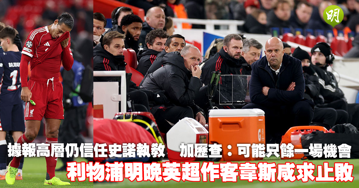 利物浦近12場各項賽事輸9場,在英超排名已跌至中下游,未來3仗對手分別為韋斯咸、新特蘭及列斯聯。轉會新聞專家羅曼奴報道,紅軍高層現時未有換帥計劃,仍然信任及全力支持史諾,不過同時指出緊接數仗非常關鍵,這名47歲荷蘭籍教頭須盡快改善成績,「利物浦(高層)不可能一直無條件支持」;紅軍名宿加歷查在專欄說,史諾可能只餘一場機會,「若作客韋斯咸依舊潰不成軍,下周管理層就可能要做重大決定。利物浦現沒有英超隊應有對抗能力、沒有基本防守能力、沒有鬥志、沒有奏效進攻套路」。