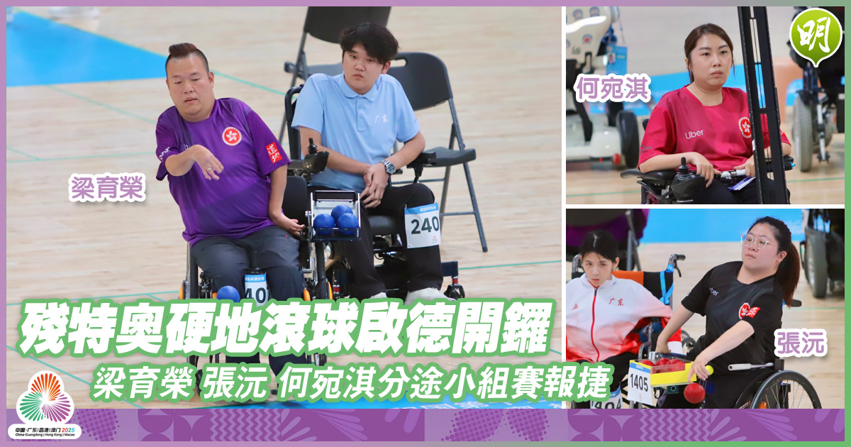 全國第12屆殘疾人運動會暨第9屆特殊奧林匹克運動會(粵港澳殘特奧會)硬地滾球項目今(9日)起一連6日在啟德體藝館展開,首個賽日率先舉行各組別男、女子個人分組賽。主場出擊的港隊有名將梁育榮與巴黎殘奧摘銀拍檔張沅,分別在個人BC4級小組兩連勝,張沅更篤定晉級4強;巴黎殘奧金牌得主的女將何宛淇則在個人BC3級分組賽旗開得勝,明日將完成剩餘兩輪比賽爭出線。