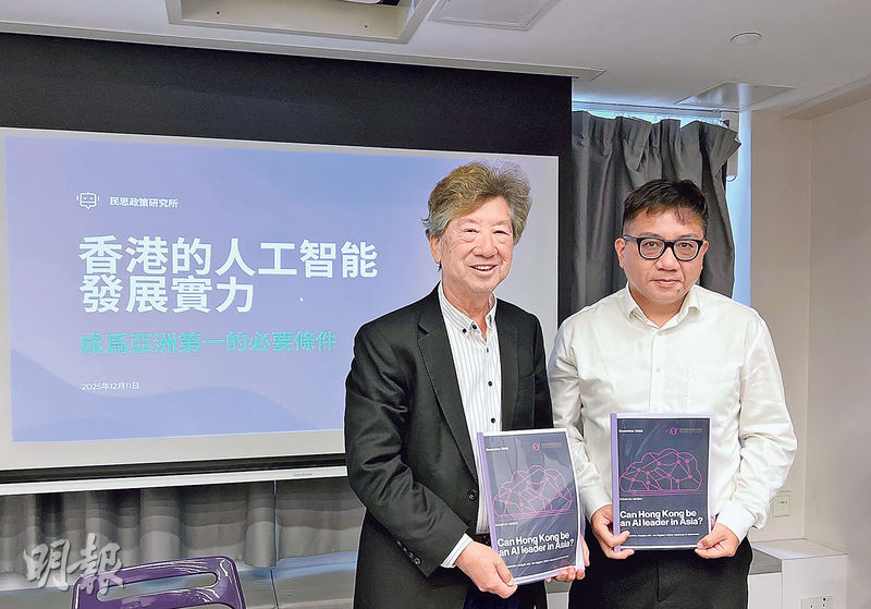 【明報專訊】由行政會議成員湯家驊做所長嘅民思政策研究所噚日發表研究,話香港嘅AI發展落後新加坡6年左右,而新加坡10年前已經「超前部署」,又有連貫嘅「國家級AI戰略」。民思建議政府建立「AI Verify」統一監管及測試標準。