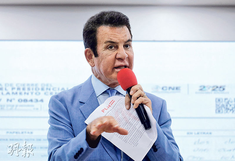 洪都拉斯國會議長雷東多在記者會上表示,國會不會認證一個受到內外壓力所玷污的選舉程序。目前點算逾99%選票,獲特朗普支持的親美保守派洪都拉斯國民黨候選人阿斯富拉,以約4萬票領先中間派洪都拉斯自由黨的納斯拉亞(圖),但約15%計票單因出現異常而要進一步審核。由於左翼執政自由與重建黨候選人蒙卡達無望勝出,該黨轉而支持納斯拉亞,後者亞同樣指控選舉舞弊。