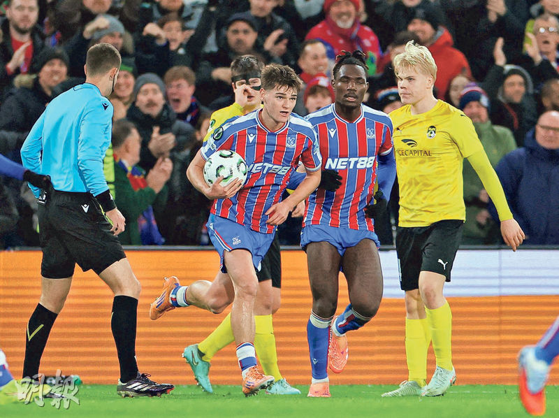 【明報專訊】英超球隊水晶宮昨晨在主場出戰歐洲協會聯賽末輪,主帥加斯拿盡遣副選迎敵下終藉中場祖斯甸迪雲尼(右三)傳射居功,以2:2逼和在下半場73分鐘起少踢1人的芬蘭球會古比斯,完成6輪賽事後以10分排第10位,無緣前8要在明年2月透過附加賽爭取16強席位,這支英超第5位球隊明晨將返英超賽場作客第17位的列斯聯。
