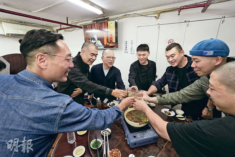 譚師傅收工後,帶着記者到達小店。店內樓高兩層,進門後,映入眼簾的是放置了十數款生猛海鮮的魚缸。我們一行人於晚上10時半左右到達,店內裝潢簡約,卻座無虛席,熱鬧得很。林先生笑指眼前的桌子:「那是澳門七人足球隊,剛踢進決賽,正來慶功呢!」閣樓位置同樣熱鬧,譚國鋒已與同事們入坐,還有遠道而來的名廚——北京米芝蓮2星現代植物料理餐廳「蘭齋Lamdre」主廚戴軍,「我帶戴師傅來體驗澳門消夜文化」。