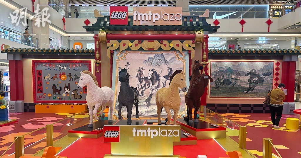 迎接馬年,屯門市廣場打造LEGO「新春駿藝樂園」,由LEGO專業認證大師洪子健以徐悲鴻大師的經典《六駿圖》為主題,用逾16萬粒LEGO砌出「六駿奔騰躍新春」的主題裝置,包括4匹約2米高立體駿馬,以及用上逾20萬粒LEGO的3米乘1.8米3D駿馬幻影圖,從左、中、右看會有不同畫面。