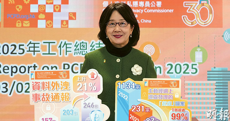 另外,公署去年處理308宗「起底」個案,投訴及經網上巡查個案分別有299宗及9宗,較2022年、即「起底」條文生效後首年,分別下跌53%及99%。鍾麗玲認為經公署執法及宣傳,加上社會氣氛轉趨平和,打擊「起底」行動已見成效。