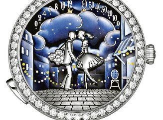 品牌標誌藍色的表盤製作工序繁複,需超過50小時製成。工匠先以微型手作工具為表盤底部噴塗8層Tiffany Blue藍色啞光漆,以締造理想的深邃效果,然後於嚴格控制溫度的烤窰中烘烤2小時,再由工匠反覆塗上15層透明光漆,並於濕度和溫度受嚴格控制的環境中風乾,才能完成。●