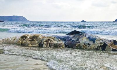 【明報專訊】西貢鹹田灣沙灘昨早出現一具嚴重腐爛鯨屍。...