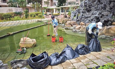 【明報專訊】將軍澳景林邨周一(26日)清洗水池,其間...