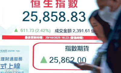 【明報專訊】恒指昨日升611點,收報25,858點,...