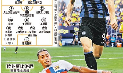 【明報專訊】巴塞隆拿昨晨於歐聯作客0:1敗走國際米蘭...