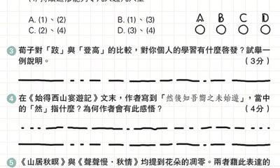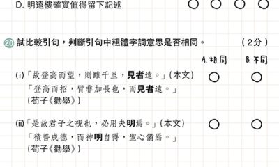 【明報專訊】(1) 試解釋以下文句中的粗體字,並把答...