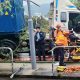 【明報專訊】昨晨8時許,40呎長貨櫃車沿屯門天后路向...