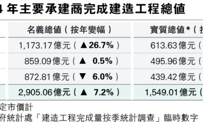 【明報專訊】政府統計處昨公布「建造工程完成量按季統計...