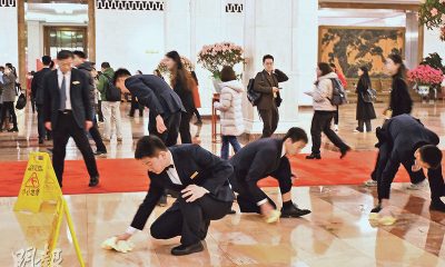 【明報專訊】全國政協閉幕會昨天結束後,一樓大堂地面出...