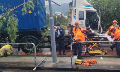 今晨(7日)8時許,一輛貨櫃車沿屯門天后路向業旺路,...