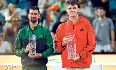【明報專訊】19歲的捷克籍新星積及文錫,昨在邁阿密網...