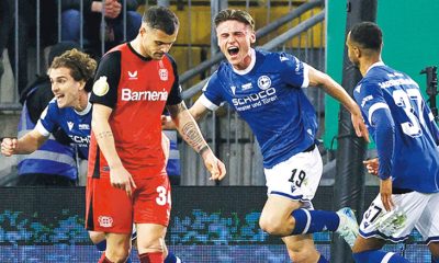 【明報專訊】利華古遜昨晨在德國盃4強雖憑中堅莊拿芬泰...