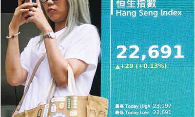 【明報專訊】恒指昨日升29點,收報22,691點,成...