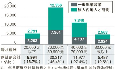 【明報專訊】兩個就業掛鈎人才入境計劃於近兩個年度共批...