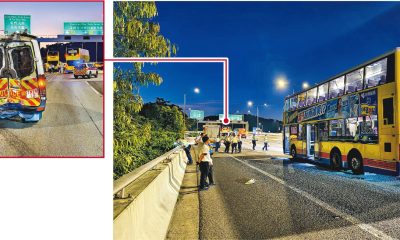 【明報專訊】一輛城巴昨午駛至港深西部公路時,疑收掣不...