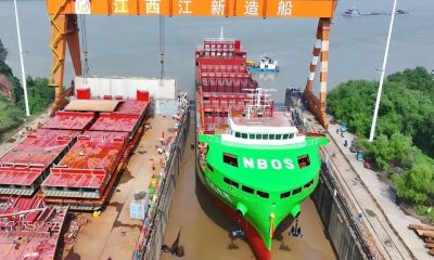 國產740TEU純電動敞口貨櫃船9月29日在江西省九...