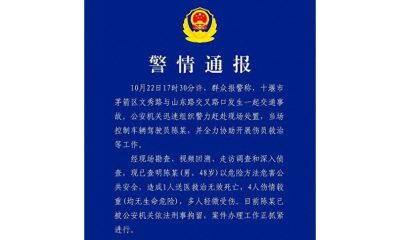 湖北省十堰市發生車輛衝撞人群事件兩日後,當地公安局今...