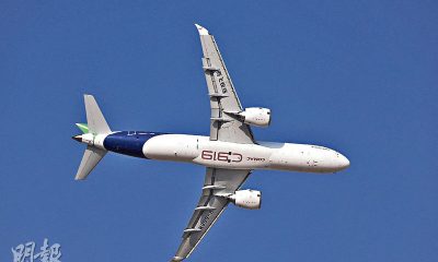 【明報專訊】中國商飛C919客機周一(17日)在20...