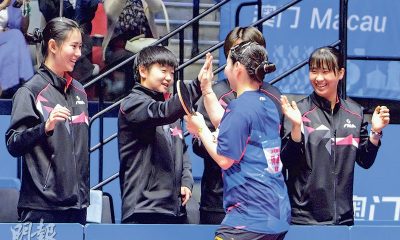 【明報專訊】全運會乒乓球項目昨在澳門銀河綜藝館續演團...